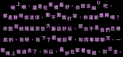 北京人說話的特色就是四聲說得飽滿。他方人則只及其飽滿度的八成,甚至四成的都有,那個時候,話就難辨認了。
